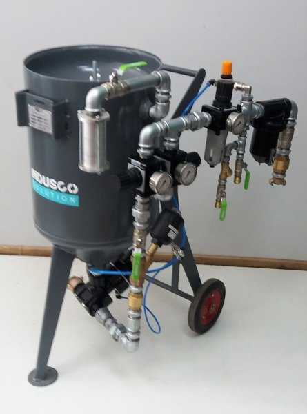 - Low pressure sandblaster, usable for dry and wet cleaning, 50 l capacity